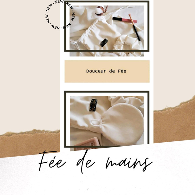 La collection « Douceur de Fée » est composée d’un pochon, d’une lingette démaquillante et d’un chouchou.